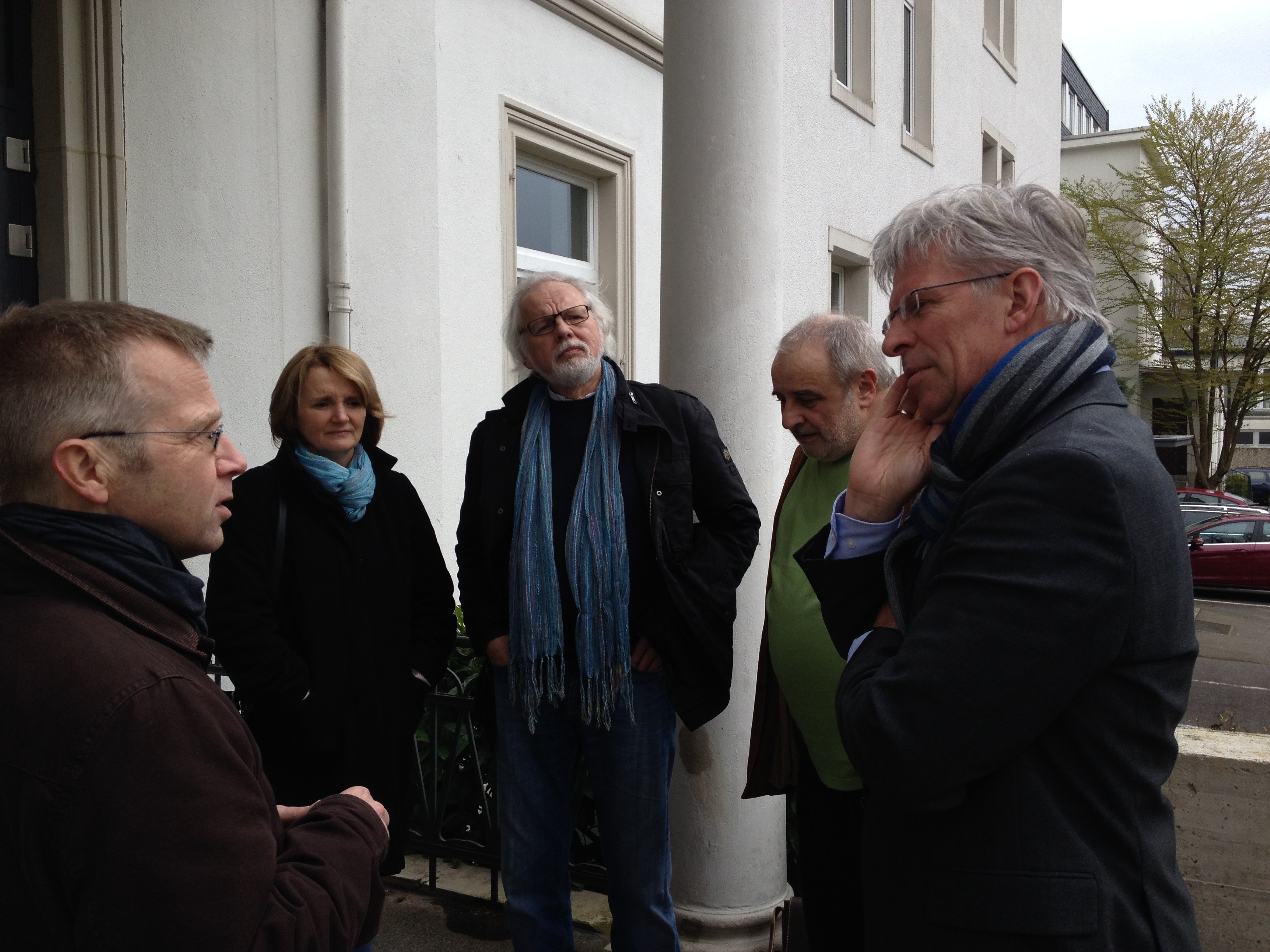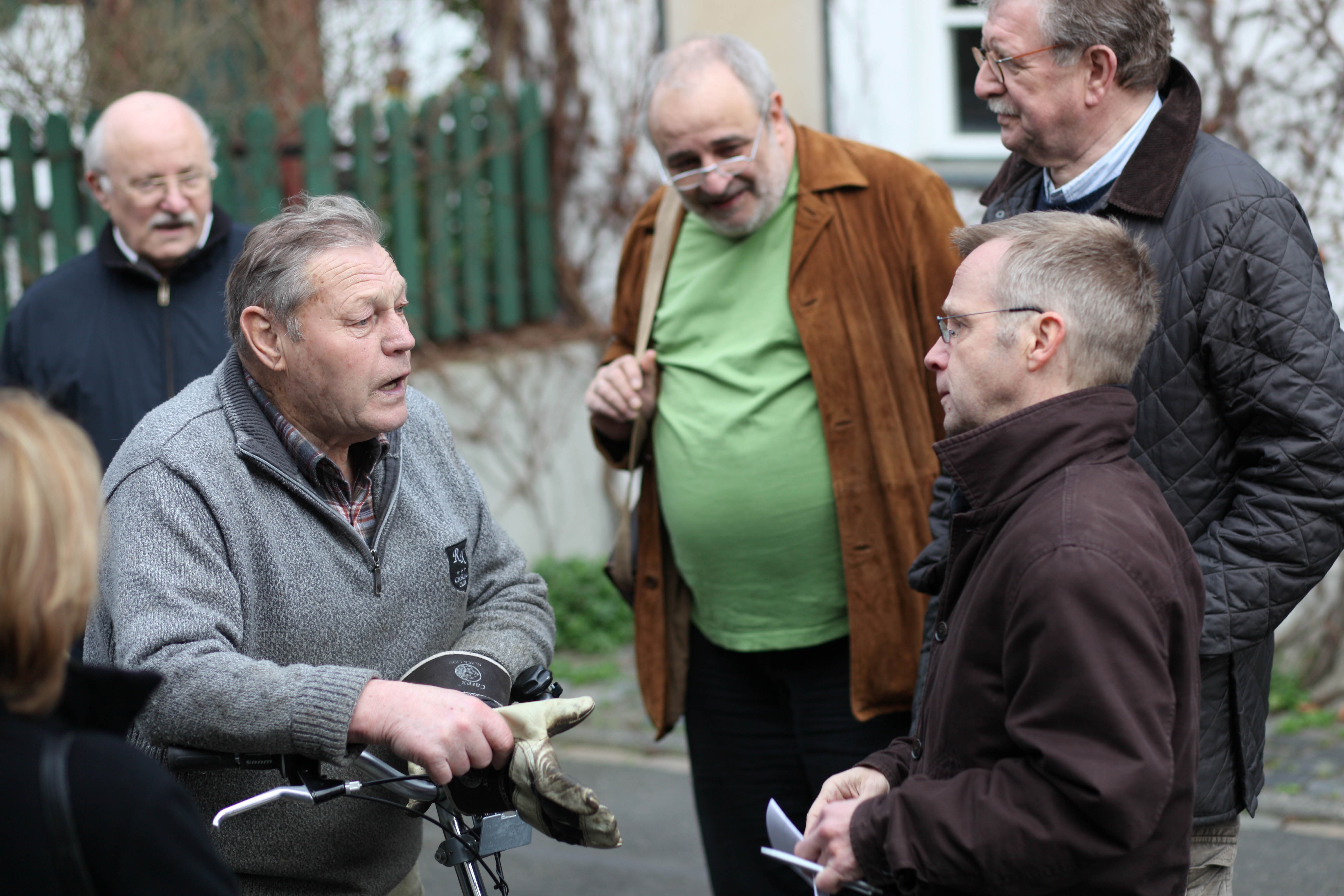 Otto Neuhoff besucht Rommersdorf und Bondorf 21. März 201430. Oktober 2022 Am Dienstag, 18. März 2014 brach Otto Neuhoff zum vorletzten Teil seiner „Bestandsaufnahme“ auf. Ziel an diesem Tag waren die beiden Honnefer Stadtteile Rommersdorf und Bondorf, in denen der Dialog einmal mehr im Mittelpunkt stehen sollte. An verschiedenen Stationen war Otto Neuhoff sichtlich beeindruckt von dem Bürgerengagement, das überall sichtbar wird: im Reitersdorfer Park, am Annaplatz oder der liebevoll mit Blumen dekorierten Möschbachstraße oder den gepflegten Fachwerkhäusern. Eine andere Seite dazu bilden die vielen Schüler, die hier lernen. Am Reiterdorfer Park, dem Startpunkt der Tour, erläuterte Klaus Wegner (Ratsherr von Bündnis 90/die GRÜNEN) anschaulich, welche außerordentliche Leistung die „Freundeskreis Reitersdorfer Park“ und der Verein „Hauptsache Familie – Bündnis für Bad Honnef“ hier vollbracht haben, um den Park in seiner Schönheit für die Bürger wieder nutzbar zu machen. Daneben: die missliche Situation des nunmehr umzäunten Geländes des Edelhoff-Stifts. Neuhoff bekräftigt, dass die noch unklare Situation muss dringend geklärt werden müsse. An den beiden Schulen im Zentrum, zunächst der Realschule St. Josef, erläuterte Schulleiter Stefan Rost die Situation. Mehr als 400 Schüler besuchen die Realschule. Er erklärte Gesprächsbereitschaft, was die Entwicklung eines zukunftsfähigen Schulkonzeptes für ganz Bad Honnef angeht. Die Realschule betrachte sich als Bestandteil der Bildungslandschaft in Bad Honnef. Die Parteienvertreter nahmen diesen Impuls sehr positiv auf. Am Siebengebirgsgymnasium – mit rund 1.000 Schülern Bad Honnef´s größte Schule – wurde der Investitionsstau deutlich. Trotz der bereits renovierten Räume für die Naturwissenschaften sind die Klassenzimmer, insbesondere die Fenster zum Teil in einem unzumutbaren Zustand. Mehr als die Hälfte der Mittel der Schulpauschale für die Erhaltung der Bad Honnefer Schulen fließt in den nächsten Jahren hierhin. Am Möschbach dann angekommen, stand hier die kritische Hochwasser-Situation im Mittelpunkt. Jenes vom 20. Juni 2013 hat dem Gelände der Villa Schaaffhausen stark zugesetzt und die Schließung der Römer-Quelle, die seit mehr als 100 Jahren die Anwohner mit frischem Quellwasser versorgt, zur Folge. Hier stand August Heinen als Ansprechpartner zur Verfügung. An gleicher Stelle erläuterten die Investoren Udo Menge und Christian Boettcher Ihre Pläne rund um das Gelände und die aus Ihrer Sicht unbefriedigende Entwicklung, die inzwischen zu einem Rechtsstreit geführt hat. Otto Neuhoff regte ein Prüfung an, ob eine kurzfristige Wiederinbetriebnahme der Quelle nicht doch möglich wäre. Otto Neuhoff im Gespräch Neuhofs abschließendes Fazit: „Rommersdorf und sein Bürgerengagement sind beeindruckend. Deutlich wurde auch wie wichtig die Weiterentwicklung der Schullandschaft ist, um für alle Schüler passende Angebote zu haben. Dazu gehört auch ein ordentlicher baulicher Zustand der Schulen. Der Verfall der Villa Schaaffhausen, des Parks und der daraus resultierenden Sicherheitssituation kann nicht im Interesse der Anwohner sein, hier müssen alle Beteiligten an einen Tisch“.