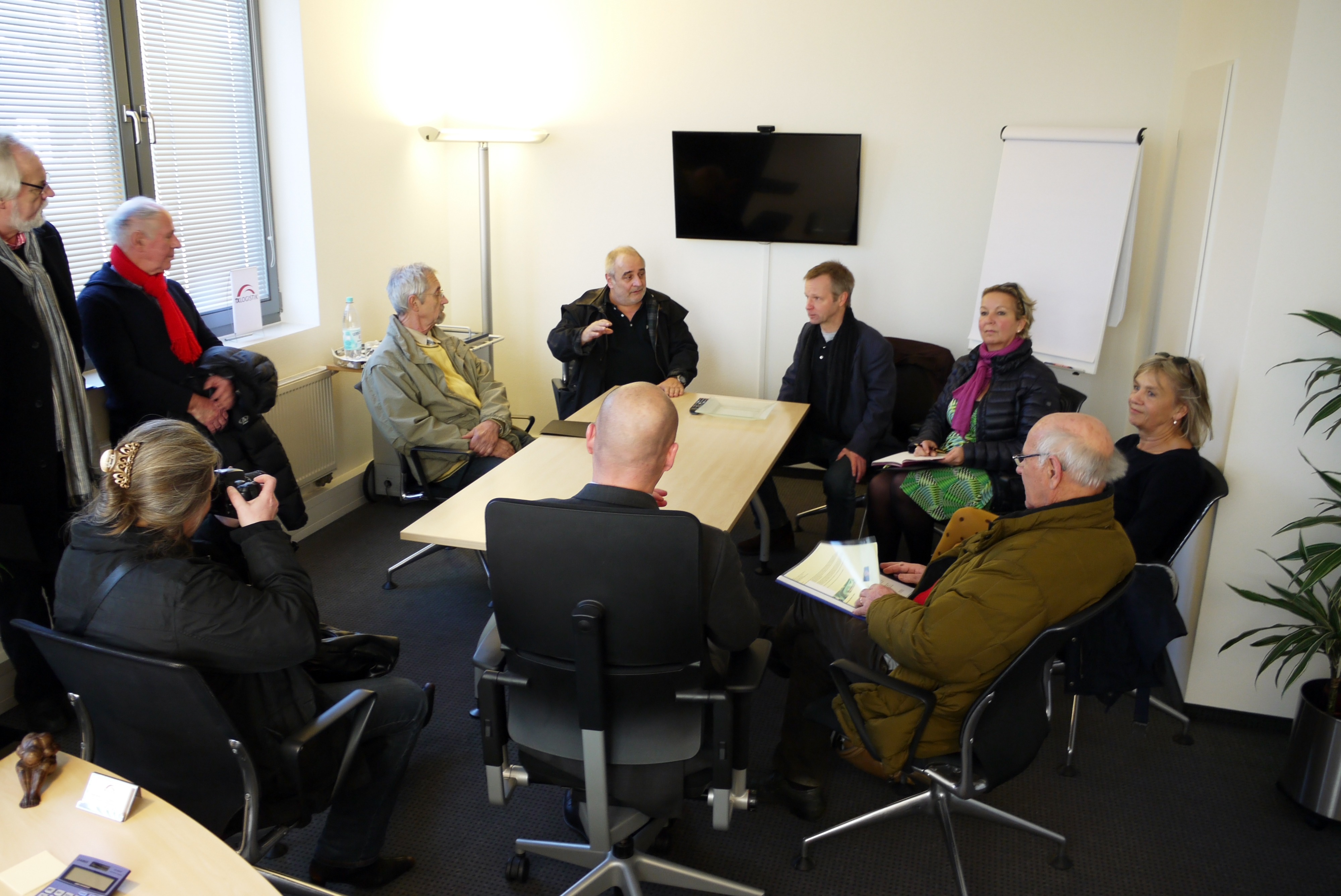 Neuhoff_Rhöndorf_1 Gespräch in großer Runde: Otto Neuhoff, zusammen mit Burkhard Hoffmeister (Mitte, Sprecher der Honnefer GRÜNEN), bei TX-Logistik.