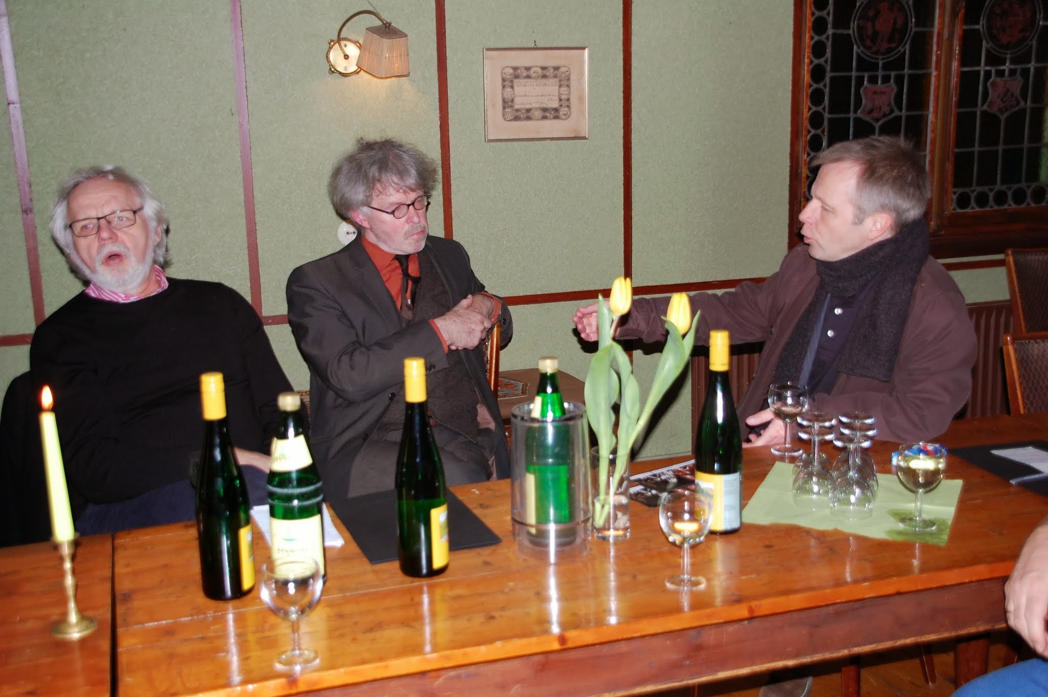 Neuhoff_Rhöndorf_2 Nach den Geschehnissen der vergangenen Monate durfte ein Gespräch mit den Winzern Felix Pieper (oben, rechts im Bild) und Karl-Heinz Bröhl (rechtes Bild, Mitte) nicht fehlen. Neuhoff_Rhöndorf_3